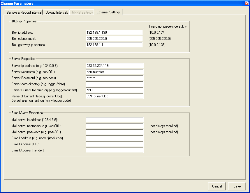 - Configuration-G.009 for an EKO21N-iP (G for GPRS+RS232 interface) with logger identification code 9.