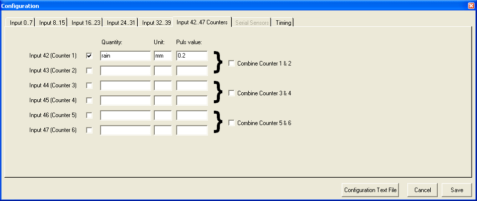 Select the input channels activated on your Logger. Note: A